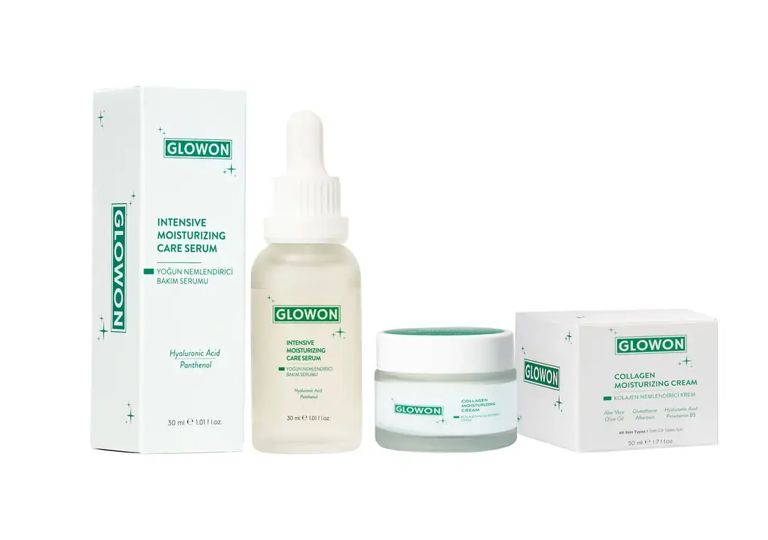 GLOWON Yoğun Nemlendirici Serum ve Kolajen Krem İçeren İkili Set - Dolgunluk ve Esneklik